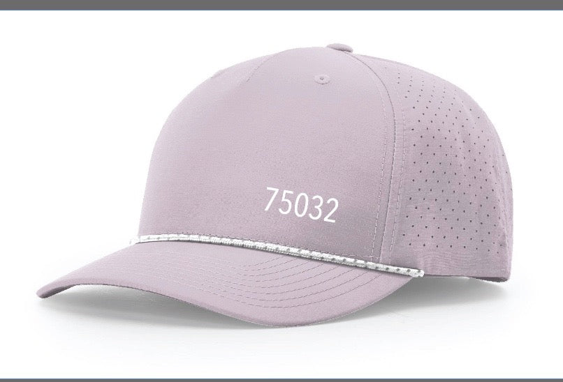 Lavender athletic style baseball cap with zip code.